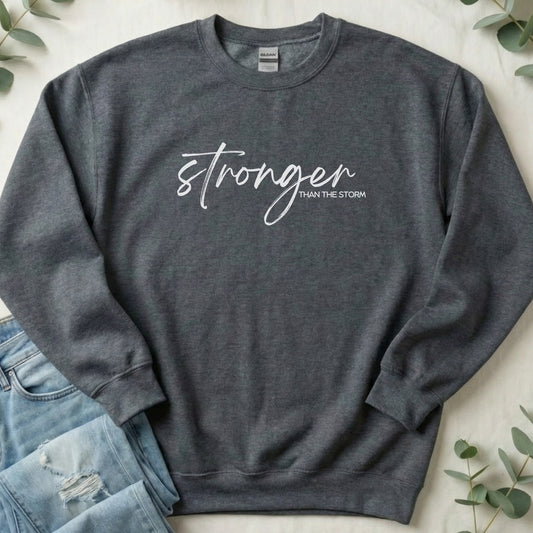 Stronger Than the Storm Sweatshirt — Inspirational Resilience Crewneck