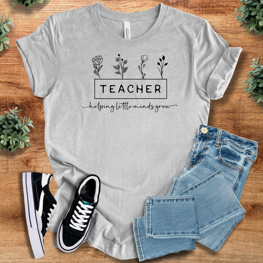Teacher Helping Little Minds Grow T‑Shirt | Soft Bella+Canvas Tee